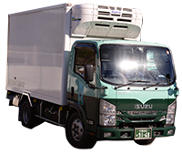 冷蔵冷凍輸送車両です。小~中量の貨物の運搬い最適です。品質を落とさず質の高い食品輸送に対応させていただきます。